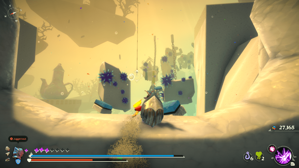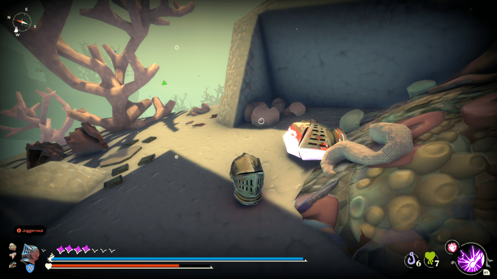 Once you put the helmet on your back the achievement “Shellslike” should pop. The knight’s helmet has one of the highest defensive stats of any shell in Another Crab’s treasure with a rating of 70. What really makes this shell stand out from the others is the shells durability as it has a durability stat of 350, which allows you take tank hits from even the strongest of enemies and keep going. The ability for the knight’s helmet is Juggernaut, which makes defeating bosses even easier, as the ability gives you a temporary damage up. The knight’s helmet is the best shell in the game in my opinion and is worth getting even if you aren’t going for the achievement.