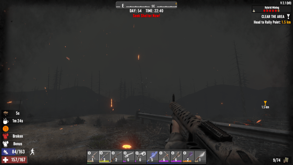 Another big change to the game is that it now feature storms that are unique to each of the four biomes. In the burnt forest you can encounter the ember storm, in the desert biome there is the sand storm, in the snow biome you can find the snow storm, and the wasteland features the radiation storm. These storms will damage the players health if they are caught in them, but you can avoid taking damage from the storms is you seek shelter. There is a 60 second warning before the storm starts that allows players to look for shelter before they start taking damage.